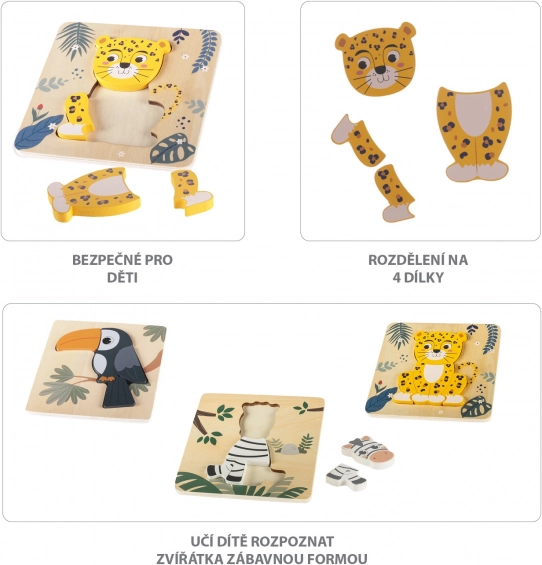 Dzięki wytrzymałym drewnianym elementom te puzzle są stworzone, aby wytrzymać nieskończone godziny zabawy, a dzięki zastosowaniu nietoksycznych farb są całkowicie bezpieczne dla dzieci. Puzzle pomagają także rozwijać małą motorykę i koordynację ręka-oko, a to wszystko poprzez zabawną i edukacyjną grę.