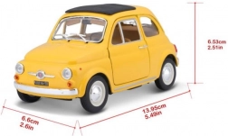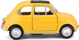 Ten model samochodu Bburago Fiat 500 F w żółtej kolorystyce i skali 1:24 przynosi nie tylko radość z kolekcjonowania, ale także wyjątkowe detale i precyzyjne wykonanie, które zachwyci każdego miłośnika motoryzacji. Model jest wykonany z wysokiej jakości metalu, co zapewnia jego trwałość i wytrzymałość.
