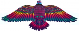 Warianty różowy, żółty i fioletowy z detalicznym nadrukiem piór sprawiają, że latawiec jest widoczny z dużej odległości i świetnie prezentuje się na niebie.