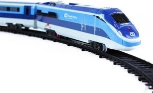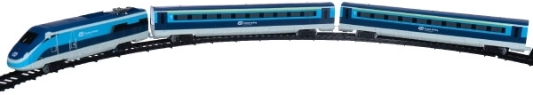 W zestawie znajduje się lokomotywa, dwa wagony, 12 łuków i 8 prostych odcinków torów o łącznej długości 4,8 m. Elementy torowiska łatwo zatrzaskują się ze sobą i można je dowolnie łączyć. Zestaw jest kompatybilny z popularnym pociągiem REGIOJET i można go rozbudować o kolejne tory oraz rozjazdy (sprzedawane osobno).