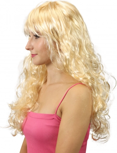 Szukasz prostego sposobu na ożywienie stylizacji? Stylowa blond peruka z długimi falami i miękką grzywką natychmiast podkreśli Twój look i doda pewności siebie. Dzięki wysokiej jakości syntetycznym włóknom wygląda na pełną i zadbaną, zachowując przy tym przyjemny blask i naturalny ruch.