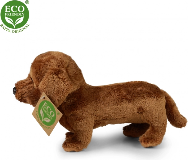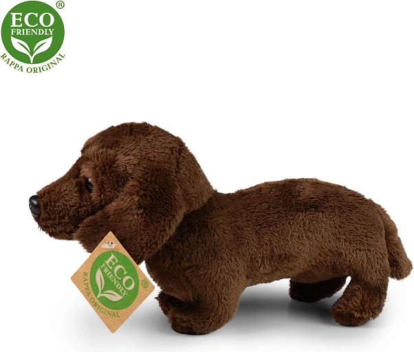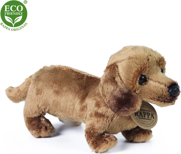 Uroczy pluszowy jamnik o wysokości 19 cm ucieszy małych i dużych miłośników psów. Zabawka jest wykonana z wysokiej jakości, miękkiego pluszu i należy do ekskluzywnej kolekcji RAPPA. Wypełnienie z recyklingowanych butelek PET jest ECO‑FRIENDLY, bezpieczne i przyjemnie miękkie w dotyku. Odpowiednie dla dzieci od 3 lat.