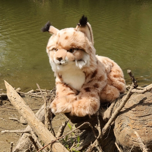 Wierne ubarwienie, plastikowe oczy i delikatne pędzelki na uszach czynią z rysia efektownego towarzysza do zabawy i dekoracji.