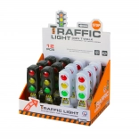 Obsługa jest prosta: prawy przycisk aktywuje sygnalizację świetlną z dźwiękiem, lewy przycisk uruchamia melodie z efektem świetlnym. Baterie 3× LR44 są już w zestawie, więc zabawa może zacząć się natychmiast.