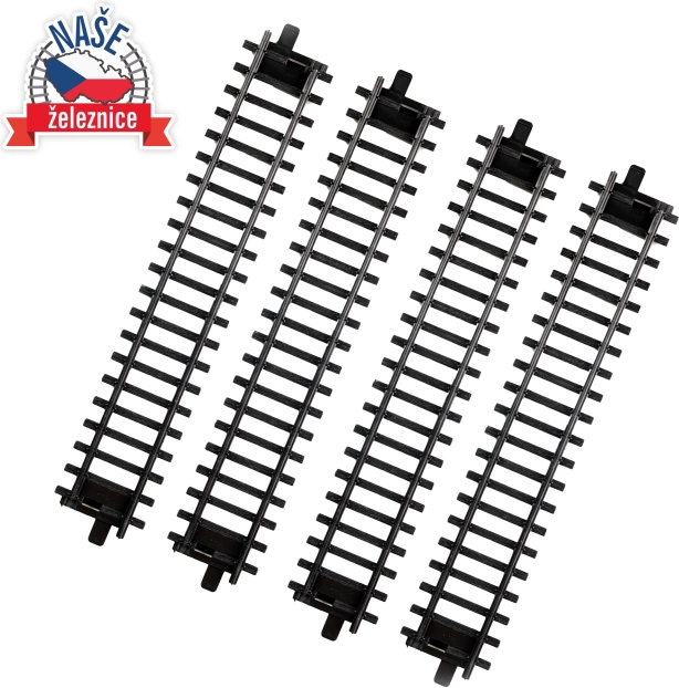 Rozszerz swoją domową kolej o zestaw 4 prostych torów, kompatybilnych z zestawami pociągowymi RegioJet, České dráhy, SC Pendolino oraz Železničná spoločnosť Slovensko. Dzięki nim łatwo wydłużysz trasę i zapewnisz kolejce dłuższy tor jazdy oraz więcej zabawy.