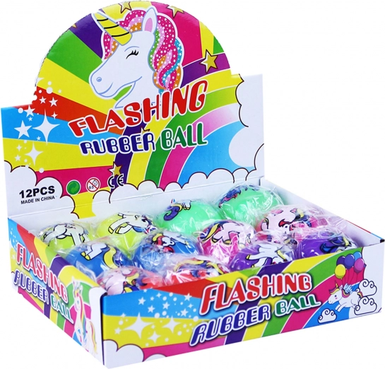 Skacząca piłka z motywem jednorożca i migającym światłem, średnica 5,5 cm. 6 kolorów, opakowanie 12 szt. Zabawa dla dzieci i dorosłych, idealna do gry i relaksu.