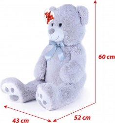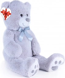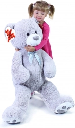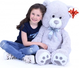 Duży szary pluszowy miś o długości ok. 100 cm zachwyca miękkością, przytulnością i solidnym wykonaniem. Aksamitna powierzchnia zachęca do tulenia, satynowa kokarda dodaje elegancji, a serduszkowa zawieszka pozwala dodać osobistą wiadomość – idealny na urodziny, święta oraz jako dekoracja do pokoju dziecięcego.