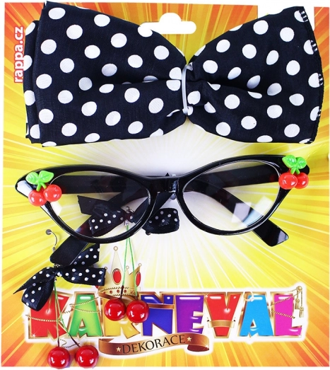 Dodaj swojemu stylowi zabawnego akcentu z retro zestawem wisienkowych dodatków! Zestaw zawiera okulary ozdobione wiśniami, kolczyki z wisienkami i stylową chustę w kropki.