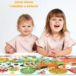 Przeżyj radość odkrywania dzięki ilustracji farmy pełnej przyjaznych zwierzątek. Puzzle wspierają rozwój dziecięcej motoryki i umiejętności, a jednocześnie są świetnym początkiem rozmów o przyrodzie i zwierzętach. Opowiadajcie historie, rysujcie ulubione zwierzątka czy traktory i bawcie się do woli.