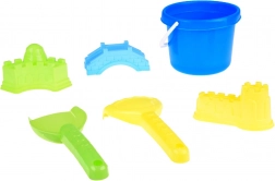Wszystko, czego dzieci potrzebują do budowania zamków i mostów: wiaderko, łopatka, grabki oraz 3 foremki w żywych kolorach. Zachęca do kreatywnej zabawy i współpracy.