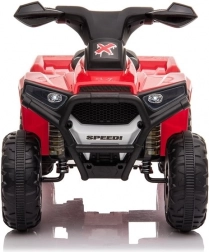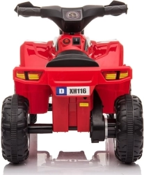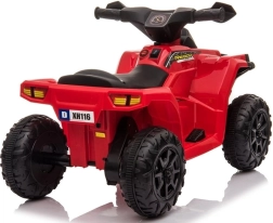Dziecięcy elektryczny quad XH116 to świetny wybór dla dzieci, które kochają ruch i przygodę. Solidna plastikowa konstrukcja, wyrazisty czerwony design oraz realistyczne elementy, jak kierownica czy przednia maska, pobudzają wyobraźnię i sprzyjają zabawie na zewnątrz i w domu.
