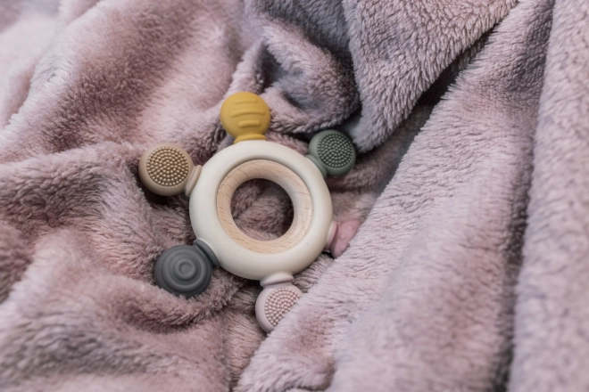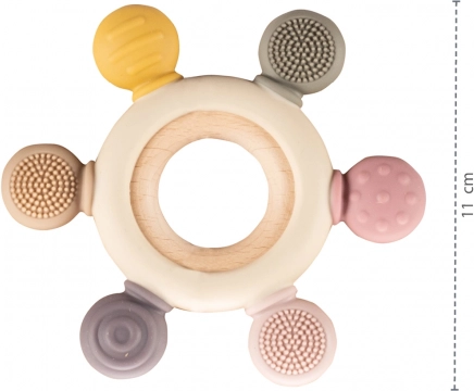 Różnorodne kolorowe tekstury na gryzaku pomagają uspokoić podrażnione dziąsła i zapewniają dzieciom rozrywkę.