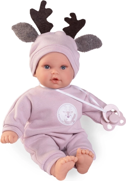 Przedstawiamy lalkę Kika od marki Antonio Juan, która wyróżnia się swoim realistycznym wyglądem i funkcjonalnością. Po usunięciu smoczka z ust zaczyna wydawać dźwięki płaczącego dziecka i mówić "mama", "papa", które brzmią zaskakująco wiarygodnie. Lalka jest wyposażona w miękkie materiałowe ciało, podczas gdy głowa i kończyny są wykonane z wysokiej jakości miękkiego winylu.