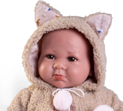 Ta lalka z pracowni Antonio Juan, hiszpańskiego specjalisty od realistycznych zabawek, od razu przyciąga uwagę precyzyjnym wykonaniem. Jest idealna dla dzieci od 3 lat, a możliwość ustawiania rąk i nóg zwiększa różnorodność zabawy. Lalka sprawdzi się zarówno do zabawy, jak i jako element dekoracyjny pokoju dziecięcego.