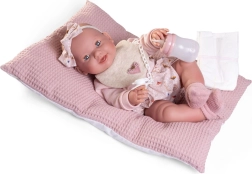 Opakowanie zawiera butelkę do napełniania wodą oraz dwie jednorazowe pieluszki. Cały zestaw starannie zapakowany jest w pudełko upominkowe, co czyni go idealnym prezentem na każdą okazję. Lalka o wysokości 42 cm jest idealna dla dzieci od 3 lat, wspiera kreatywną zabawę i opiekę.