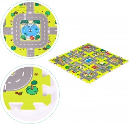 Ta piankowa mata do zabawy z kolorowym motywem miasta, dróg i budynków tworzy inspirującą przestrzeń do zabawy, nauki i rozwoju motoryki. Zapewni dzieciom komfortowe i miękkie miejsce do zabawy, raczkowania i pierwszych kroków, a jednocześnie chroni przed chłodem od podłogi i amortyzuje uderzenia przy upadkach.