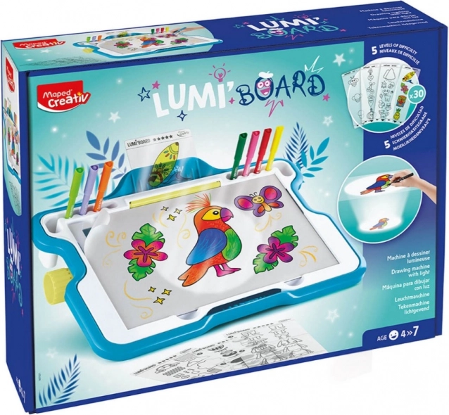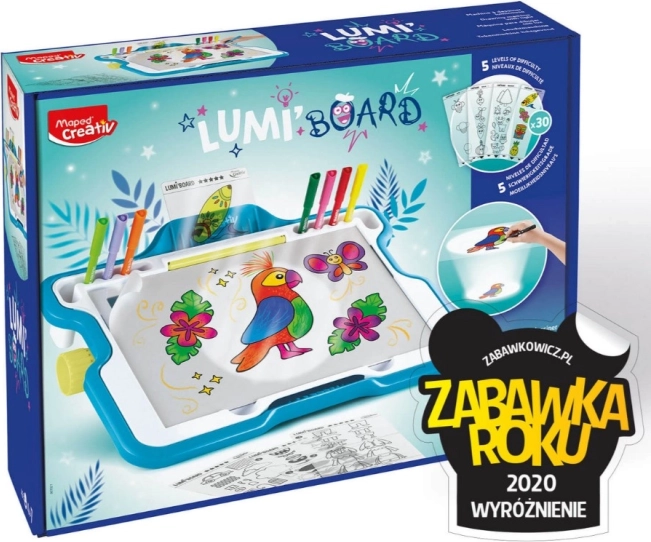 Podświetlana tablica do rysowania Maped została stworzona dla małych artystów, którzy chcą doskonalić swoje umiejętności i jednocześnie świetnie się bawić. Wystarczy włączyć światło, umieścić szablon pod ekranem i położyć czysty papier na wierzchu. Następnie dzieci mogą rozpocząć swoje artystyczne tworzenie.