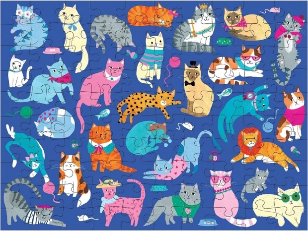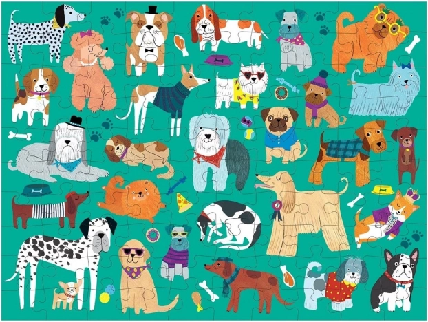 Odkryj zabawne i edukacyjne dwustronne puzzle z motywami psów i kotów, składające się ze 100 elementów, które rozwijają koncentrację i pamięć wzrokową. Wykonane z materiałów z recyklingu i drukowane nietoksycznymi tuszami, zapakowane w solidne pudełko dla bezpiecznego przechowywania.