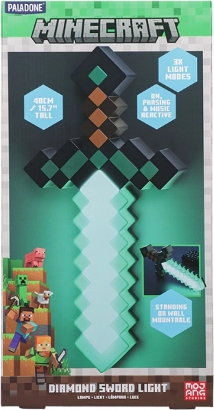 Wprowadź do swojego wnętrza atmosferę gry dzięki Minecraft Światłu Diamentowy Miecz. Ten świecący miecz oferuje trzy różne tryby oświetlenia: stałe włączone, przechodzenie i tryb reagencyjny na muzykę. Doskonały do wieczornej rozrywki lub jako stylowa dekoracja dla fanów Minecraft. Z wysokością 40 cm łatwo go umieścić na stole lub zamontować na ścianie.
