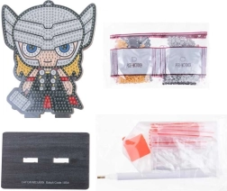 W opakowaniu znajdziesz wszystko, czego potrzebujesz: aplikator, wosk, miseczkę, zestaw kolorowych kryształków, bazę figurki i stojak. Gotowa figurka doskonale sprawdzi się jako dekoracja na biurko lub półkę, prezent dla fanów Avengers lub pierwszy krok do świata diamond paintingu.