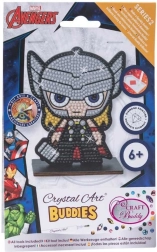 Odkryj magię diamentowego malowania w kompaktowej i zabawnej formie Crystal Art Buddies. Dzięki nadrukowanemu szablonowi figurki i samoprzylepnym punktom z łatwością przeniesiesz kolorowe kryształki na wyznaczone miejsca i krok po kroku stworzysz błyszczącą figurkę Thora na drewnianym stojaku. Tworzenie jest intuicyjne, kojące i świetne na wspólne chwile z rodziną.
