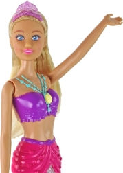 Długie blond włosy, lśniąca korona i różowo‑fioletowy kostium podkreślają jej urok. Lalka wspiera rozwój wyobraźni, opowiadanie własnych historii i zabawy w odgrywanie ról.