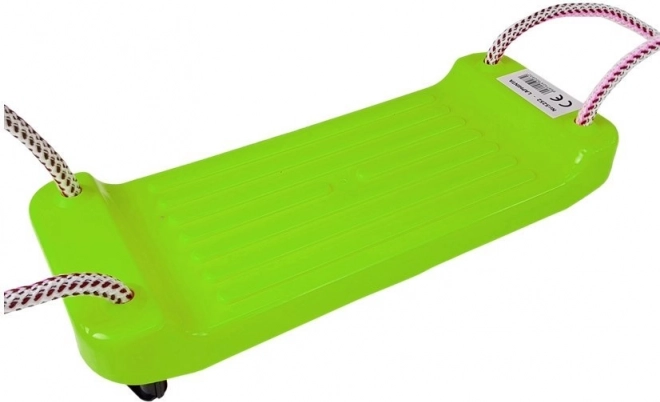 Zielona plastikowa huśtawka w kształcie deski dla dzieci od 3 lat zapewni godziny ruchu i zabawy w domu i w ogrodzie. Ma mocne liny z uchwytami, łatwy montaż, jest lekka i wytrzymała oraz spełnia certyfikaty CE i EN 71. Maksymalne obciążenie 50 kg.