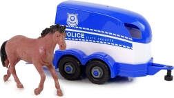 Zamknięta przyczepa z otwieraną klapą umożliwia realistyczny załadunek i rozładunek figurki konia. Idealne do scenariuszy policyjnych akcji.