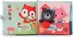 Ta miękka materiałowa książeczka prowadzi dzieci przez historię wilka Ludwika, który odwiedza swoich przyjaciół, kosztuje ich smakołyki i uczy się prawidłowo trzymać łyżkę. Dzięki zintegrowanej pacynce wilka dzieci łatwo odegrają własne scenki, wzmacniając fantazję i umiejętności komunikacyjne.