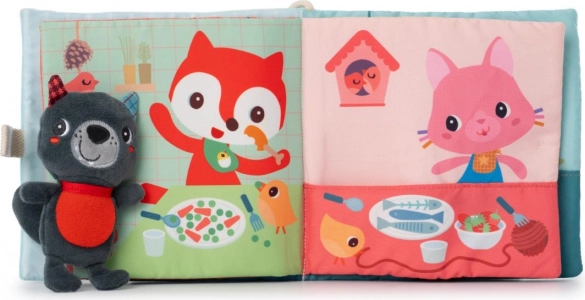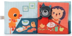 Wyraziste kolory, zabawne ilustracje zwierzątek i detale dotykowe wspierają rozwój sensoryczny oraz koordynację ręka–oko. Praktyczne okienko na zdjęcie umożliwia personalizację, dzięki czemu dziecko staje się częścią opowieści. Materiał jest przyjemny w dotyku, bezpieczny i łatwy w utrzymaniu.