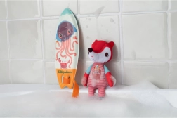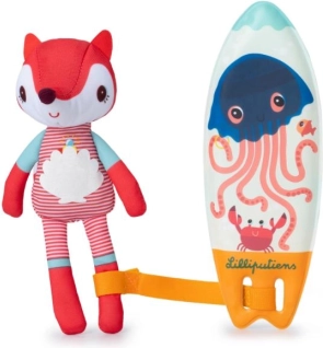 Urocza lisiczka Alice kocha fale! Gdy tylko wskoczy do wody, na jej neoprenie i desce surfingowej pojawiają się magiczne rysunki. Zabawna zabawka do kąpieli dla najmłodszych wspiera sensoryczne odkrywanie i zamienia każdą kąpiel w radosną przygodę. Łatwa w utrzymaniu i bezpieczna, od marki Lilliputiens.