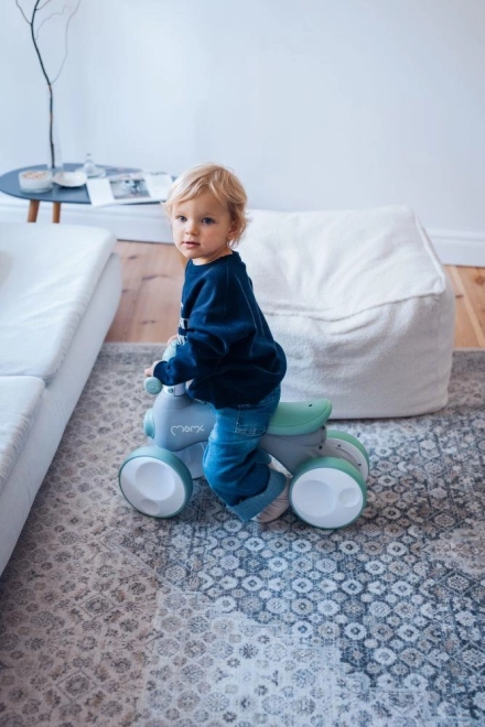 MoMi TOBIS to jeździk zaprojektowany dla najmłodszych: stabilna, czterokołowa konstrukcja wspiera równowagę i koordynację, a atrakcyjne funkcje utrzymują uwagę dziecka. Jedno naciśnięcie przycisku uruchamia magiczne bańki, przednie światło zmienia kolory, a klakson zapewnia jeszcze więcej zabawy.