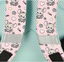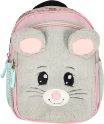 Przednia część plecaka pokryta jest miękkim sztucznym futerkiem z wyszywaną buźką myszki – wygląda jak ulubiona pluszowa zabawka i dzieci od razu go pokochają.