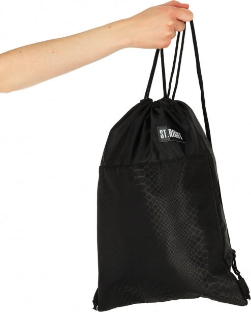 Praktyczny i stylowy worek na obuwie lub strój gimnastyczny marki ST. RIGHT w eleganckim czarnym kolorze. Dzięki lekkiej tkaninie i solidnemu ściąganiu na sznurki wygodnie nosi się go w ręce, na ramieniu i na plecach. Idealny do szkoły, na trening i na co dzień, z kompaktowymi wymiarami 34 × 43 cm dla wygodnego przechowywania butów i drobiazgów.