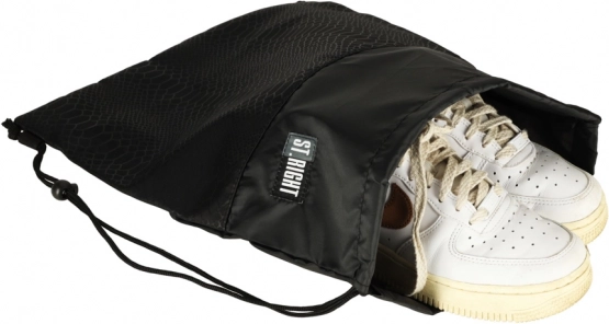 Lekki i wytrzymały worek na buty ST. RIGHT to świetny wybór dla uczniów, sportowców i każdego, kto szuka prostego i niezawodnego rozwiązania do przenoszenia obuwia oraz odzieży sportowej. Minimalistyczny design w czerni uzupełnia subtelne logo i teksturowany wzór, który wygląda nowocześnie i uniwersalnie.