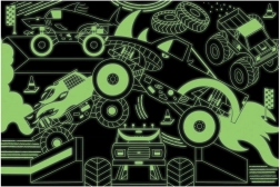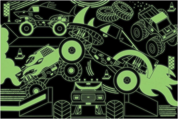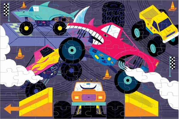 Ułóż dynamiczną i ekscytującą scenę z puzzlami Monster Trucks, które po zgaszeniu światła świecą w ciemności! Ta układanka zawiera 100 precyzyjnie wyciętych elementów i jest wykonana z materiału z recyklingu i uzyskanego zrównoważenie. Specjalna matowa powierzchnia zapewnia wierne odwzorowanie wszystkich detali i kolorów.