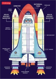 Na odwrocie ilustracji znajduje się schematyczny opis promu kosmicznego, który zapewnia dzieciom dodatkową wartość edukacyjną.
