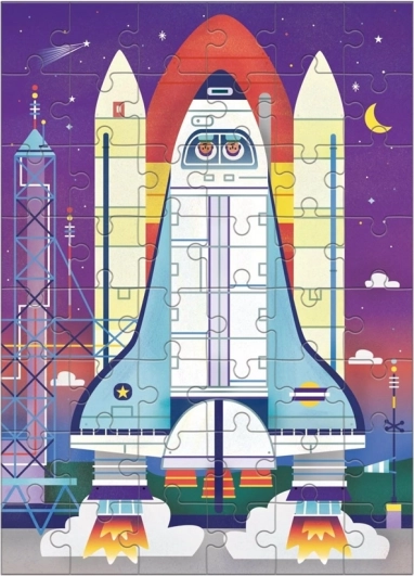 Mini puzzle prom rakietowy od Mudpuppy to idealna układanka dla kreatywnych i ciekawych świata dzieci. Dzięki realistycznemu schematowi promu kosmicznego na odwrocie dzieci nie tylko się bawią, ale także uczą się, z czego składa się prom. Puzzle wykonane są w 90% z papieru z recyklingu, pudełko zawiera 70% papieru z recyklingu, a farby są nietoksyczne i na bazie soi, co gwarantuje bezpieczeństwo i dbałość o środowisko. Produkt spełnia normy bezpieczeństwa CPSIA, ASTM i CE.
