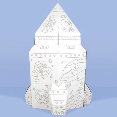 Ta duża kartonowa rakieta po złożeniu staje się imponującym elementem do zabawy, który pobudza wyobraźnię i kreatywne zabawy. Dzięki solidnej kartonowej konstrukcji jest lekka i łatwa do przenoszenia.