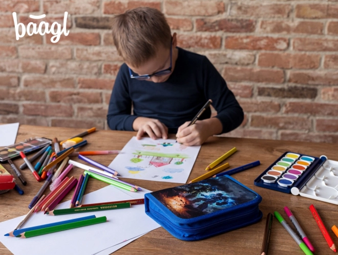 • Klasyczny szkolny piórnik jednopietrowy z dwiema klapami.
