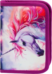 Odchylany system otwierania, wewnętrzny organizer z gumką, przezroczysta kieszeń na plan lekcji oraz boczne kieszenie na butelkę zapewniają perfekcyjny porządek.