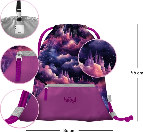 Tornister, piórnik i worek z dopasowanym motywem: piórnik z wysokiej jakości zamkiem YKK oraz worek z kieszenią na zamek i karabińczykiem do przypięcia.