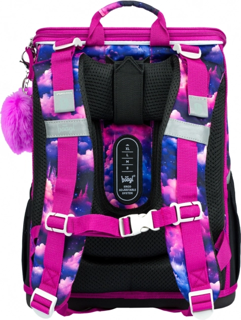 Przesuwny system pleców i regulowane paski zapewniają prawidłowe dopasowanie tornistra do wzrostu dziecka oraz wygodne noszenie już od 1. klasy.