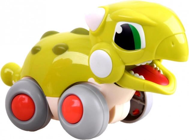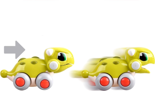 Ten wesoły dinozaur zamieni każdą podłogę w przygodową trasę. Dzieci po prostu go popchną, a on pojedzie do przodu, a jego paszcza otwiera się i zamyka – efektowny detal, który wspiera wyobraźnię i zmysły.