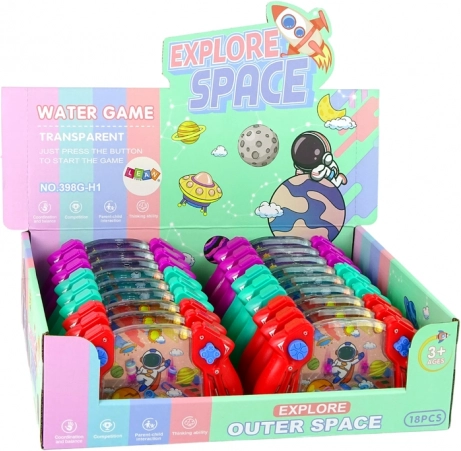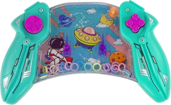 Zabawka wodna ma kształt joysticka z ciekawą kosmiczną grafiką w trzech wersjach kolorystycznych.