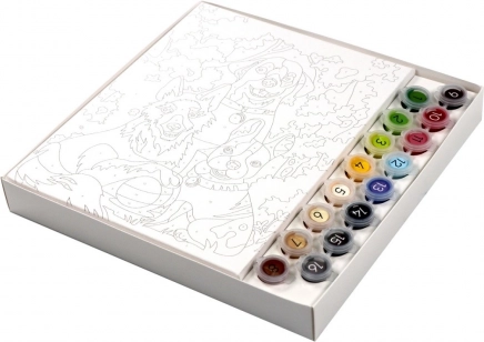 Zestaw zawiera wstępnie nadrukowane płótno, 16 farb akrylowych i 2 pędzle. Otwórz, dopasuj numery i maluj bez żmudnych przygotowań.