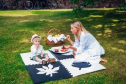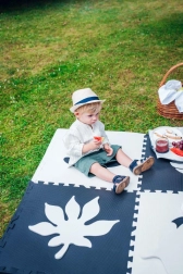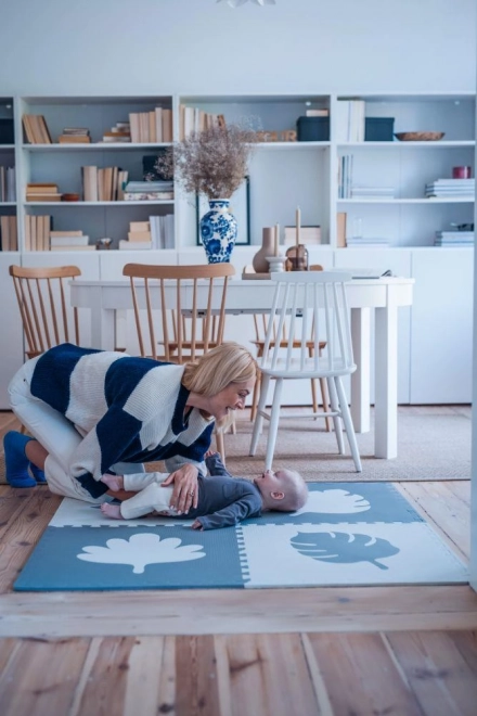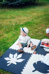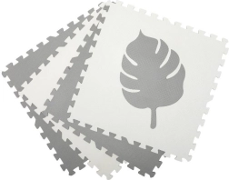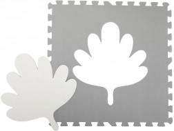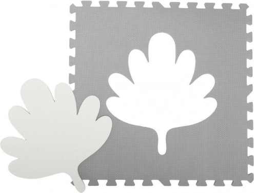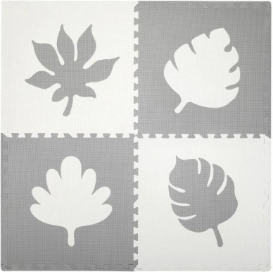 Duże przestrzenne liście, które są częścią puzzli, stanowią dla dziecka doskonałą zabawkę. Gdy maluch z niej wyrośnie, możesz użyć maty jako elementu dekoracyjnego, korzystając z taśmy dwustronnej.