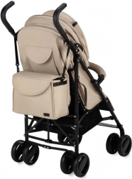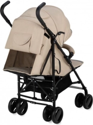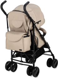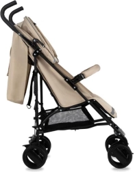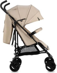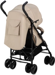 Wózek wyposażono w zwrotne koła z pianki EVA, które są odporne na przebicia, blokadę przednich kół oraz elementy odblaskowe dla lepszej widoczności. Regulowane oparcie i podnóżek zapewniają komfort od 6 miesięcy do 15 kg. Praktyczna możliwość odpięcia pałąka z jednej strony ułatwia sadzanie dziecka.