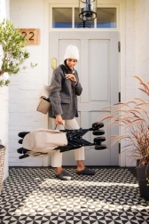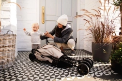 Wózek złożysz w kilka chwil, a dzięki zintegrowanemu uchwytowi wygodnie przeniesiesz go do auta, komunikacji miejskiej czy po schodach. Idealny w podróży i na co dzień.