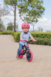 Solidna konstrukcja sprosta dziecięcym przygodom, a zintegrowany uchwyt ułatwia szybkie przenoszenie rowerka biegowego.